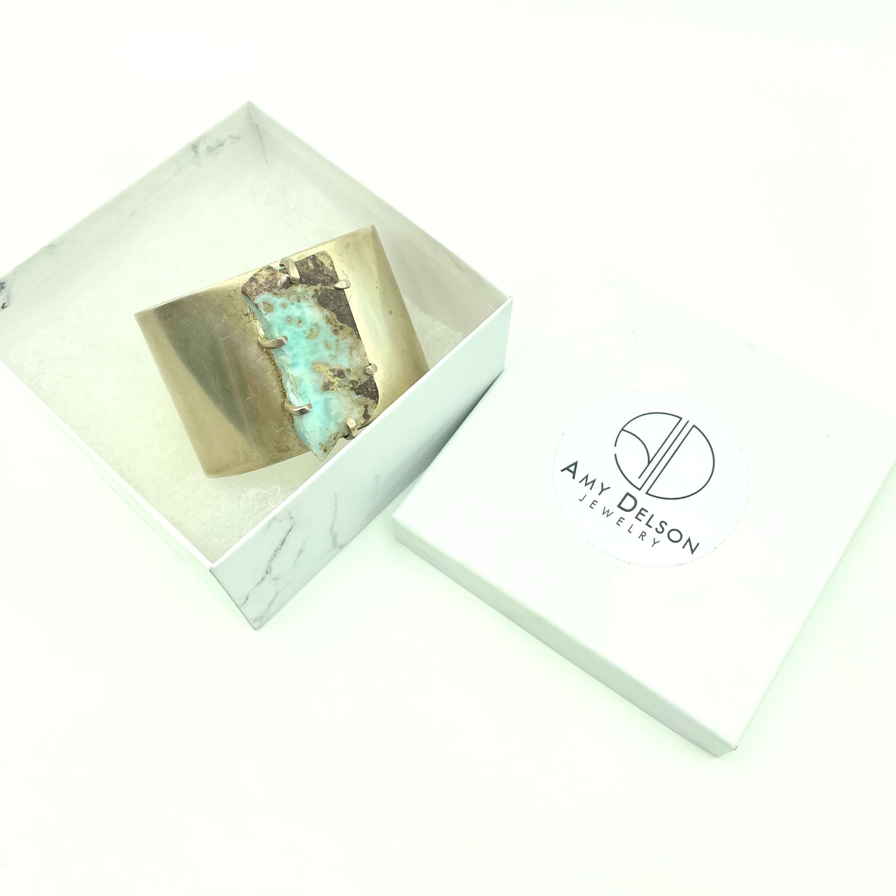 This mesmerizing ocean blue stone comes exclusively from the Dominican Republic. A handmade from scratch sterling silver prong setting holds it in place. Let this be your peaceful warrior talisman.