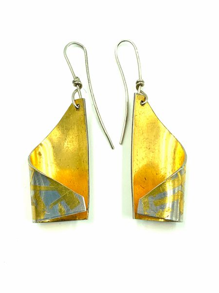 Keum-Boo is an ancient Korean gilding technique where layers of gold are fused to silver. These earrings play with two sides and curling dimension.