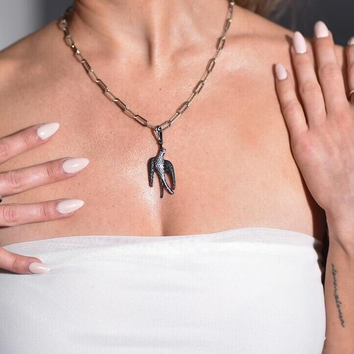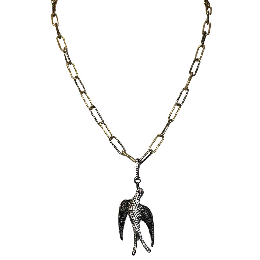 Amy Delson JewelryBetty - Crystal Bird Diamond Cut Paperclip Chain Silver Necklace