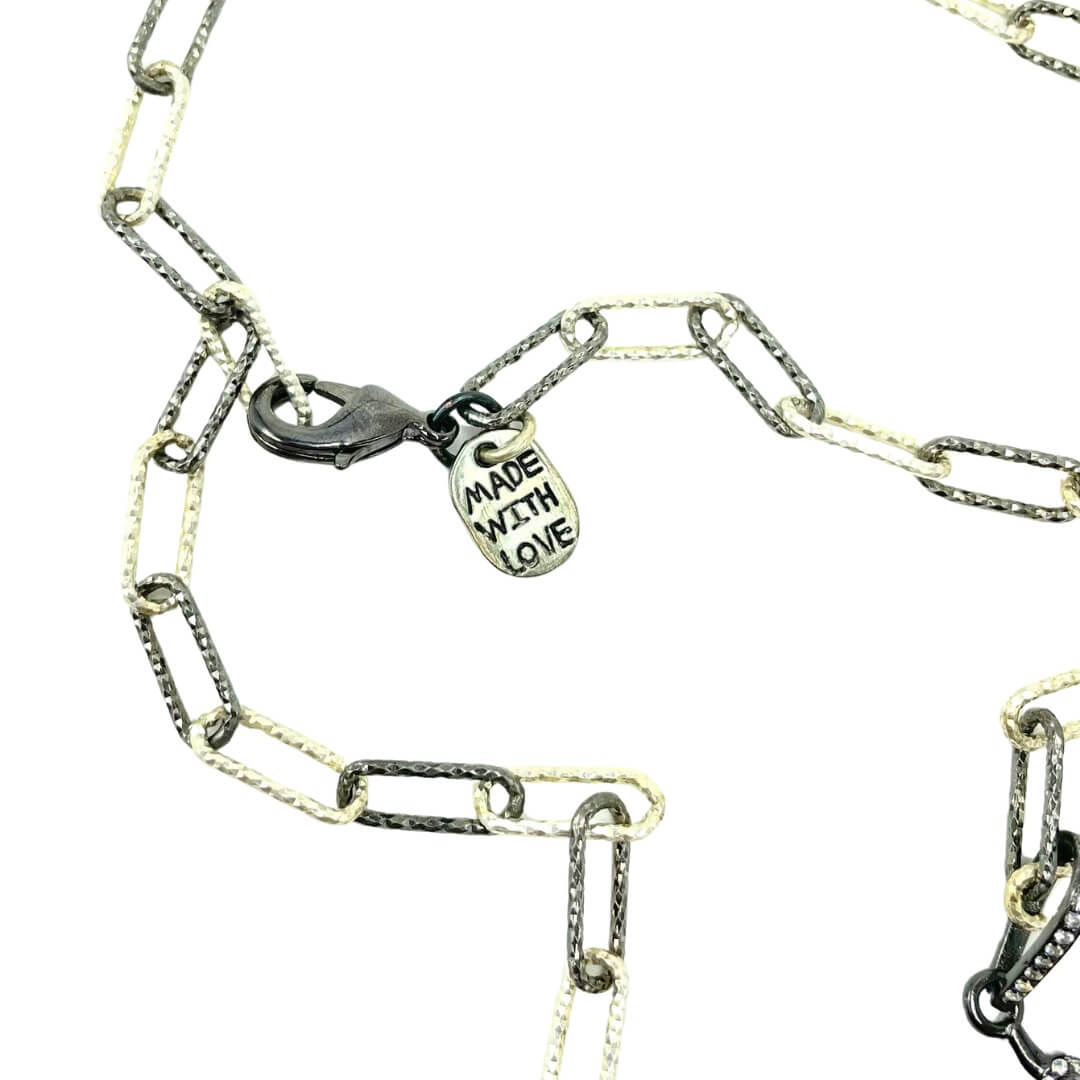 Diamond cut paperclip chain in sterling silver with oxidized accents