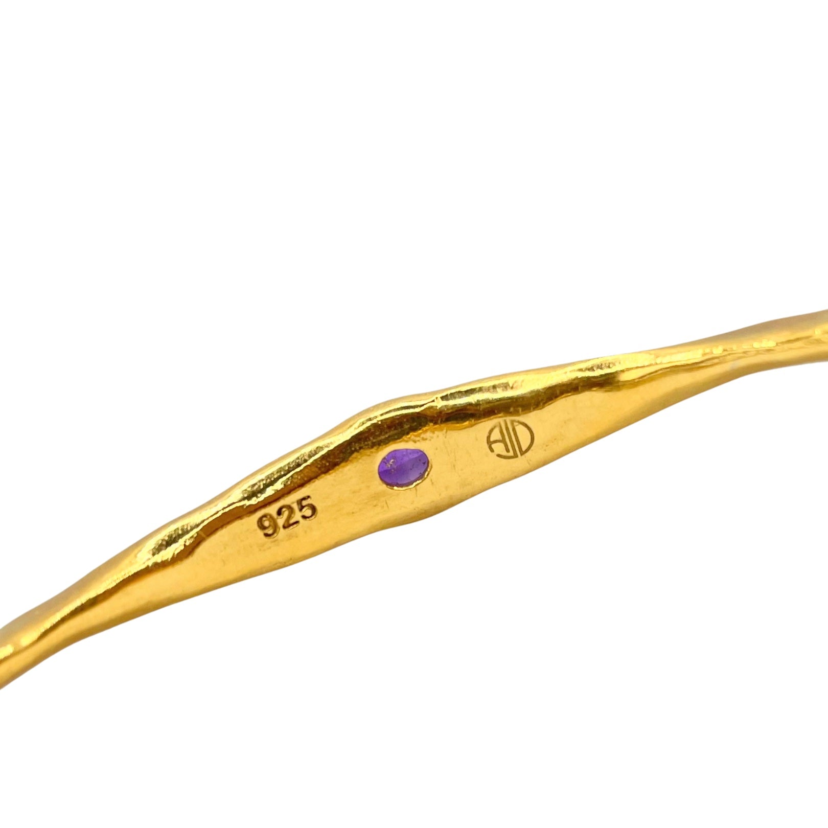 The Brooke Bangle reimagines classic arm candy with modern artistry and serene energy. Originally designed using traditional hand-forging techniques, this isn't your typical bangle – it's a sculptural masterpiece that undulates gracefully around your wrist. Four genuine Purple Amethyst gemstones are strategically placed on each side, creating a continuous sparkle of tranquil violet that catches light from every angle.