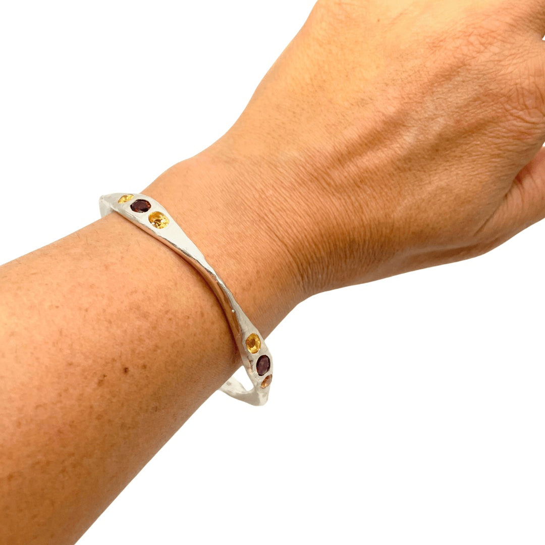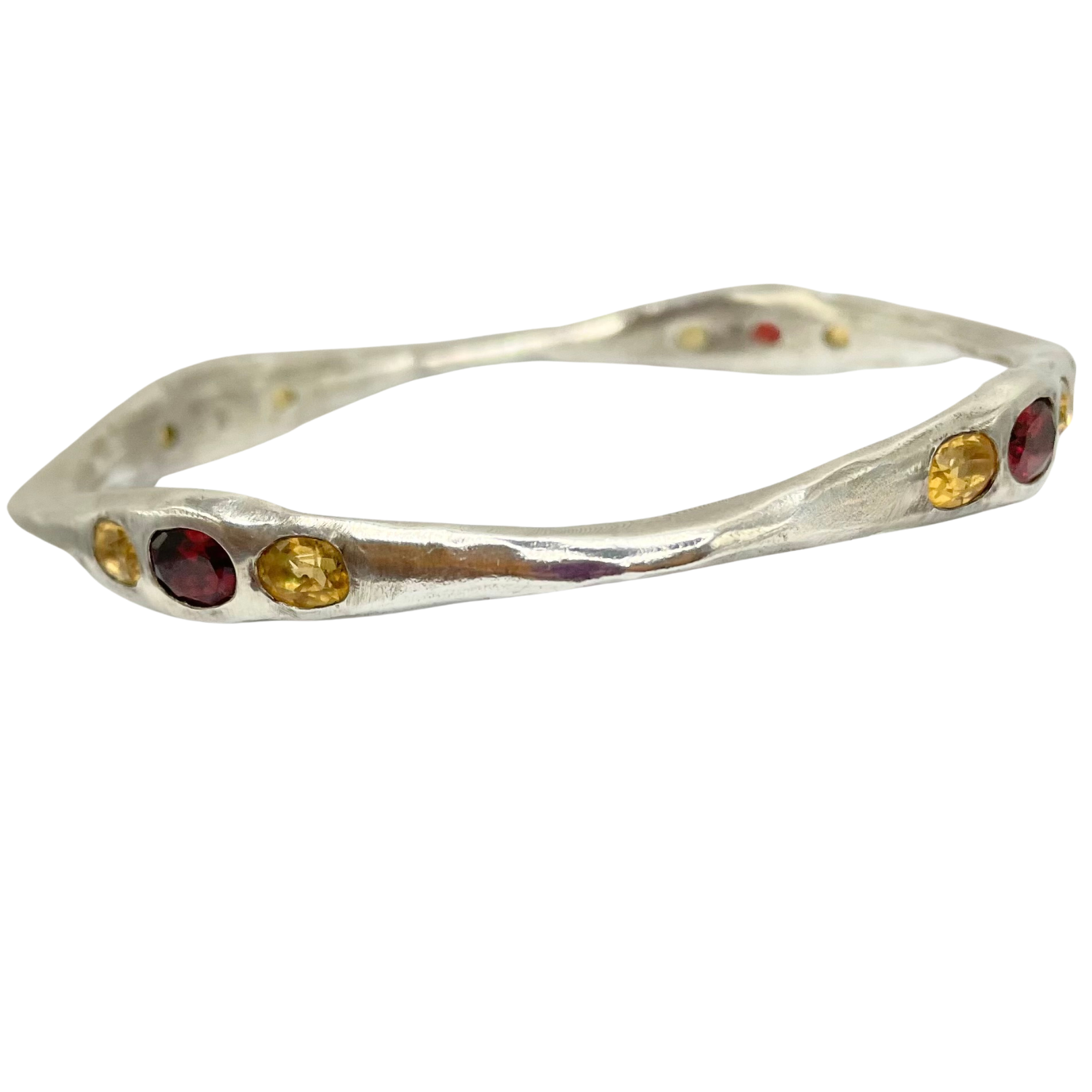 Amy Delson JewelryBella - Red Garnet, Orange Citrine Twelve Gemstone Bangle in Sterling Silver
