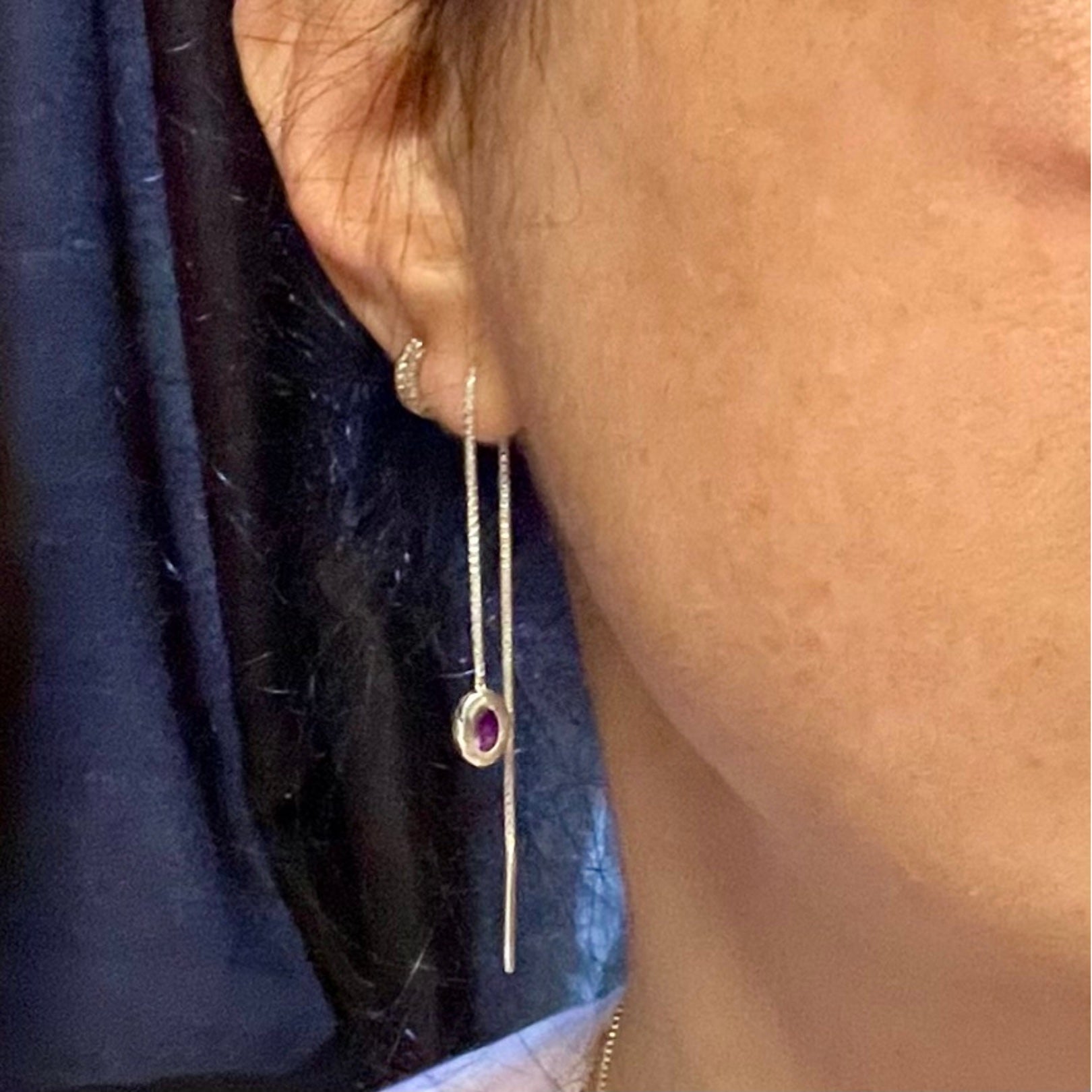 Whether you prefer a subtle peek or a dramatic dangle, these threaders adapt to your mood and style. Purple Amethyst, February's birthstone, has been treasured throughout history for its ability to calm the mind and relieve anxiety and stress – making these versatile earrings as meaningful as they are endlessly customizable.