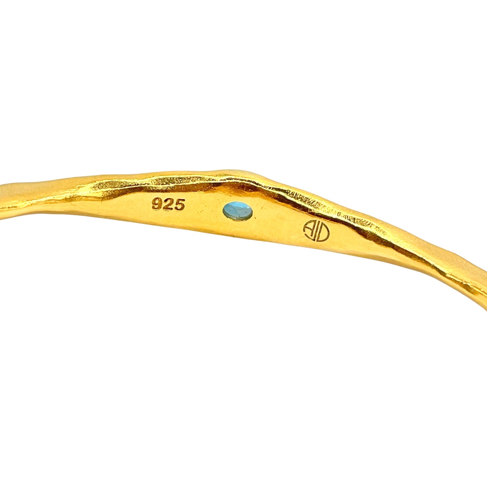 The Brooke Bangle reimagines classic arm candy with modern artistry and timeless appeal. Originally designed using traditional hand-forging techniques, this isn't your typical bangle – it's a sculptural masterpiece that undulates gracefully around your wrist. Four genuine London Blue Topaz gemstones are strategically placed on each side, creating a continuous sparkle that catches light from every angle.