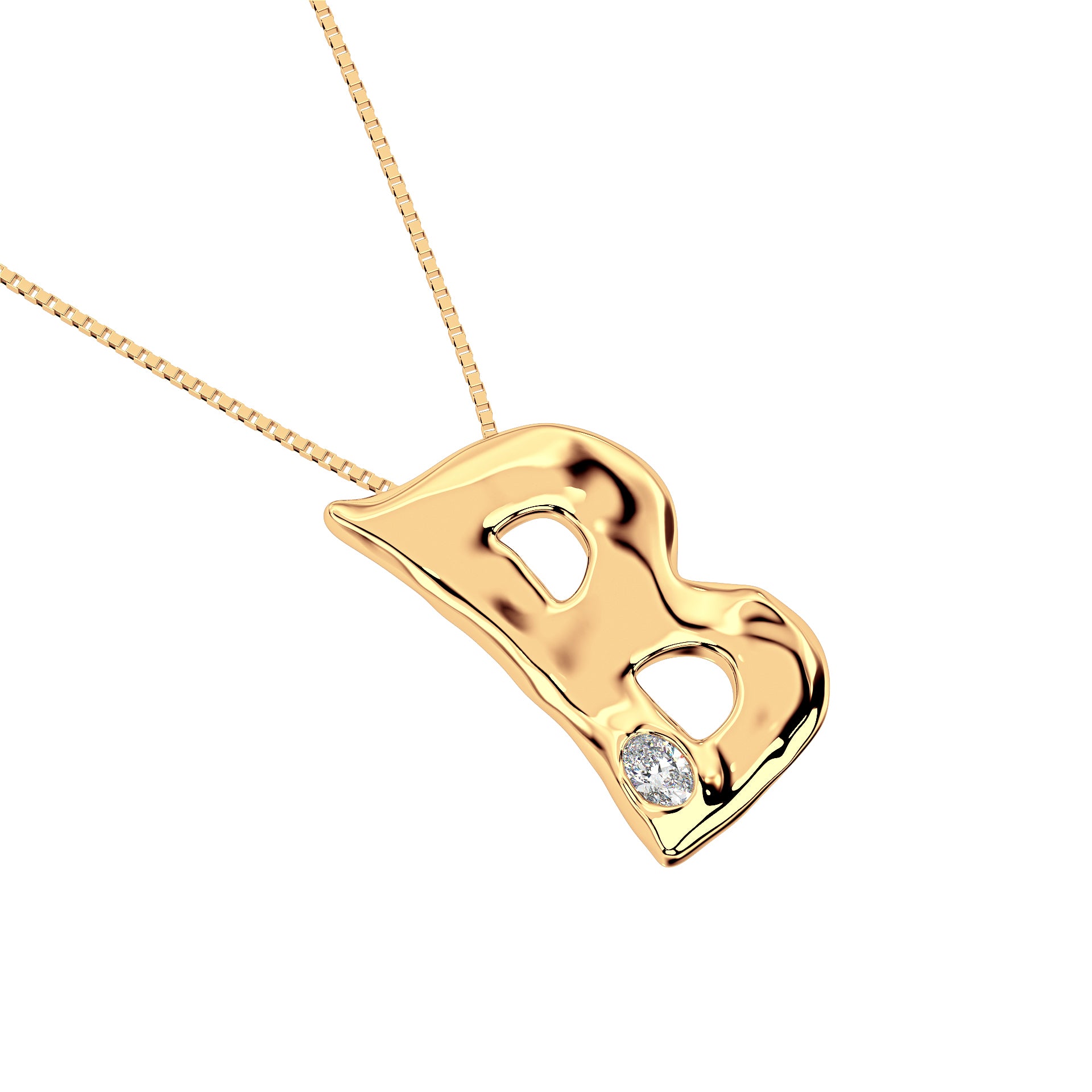 Letter B Necklace in 14K Gold with Oval Lab Diamond