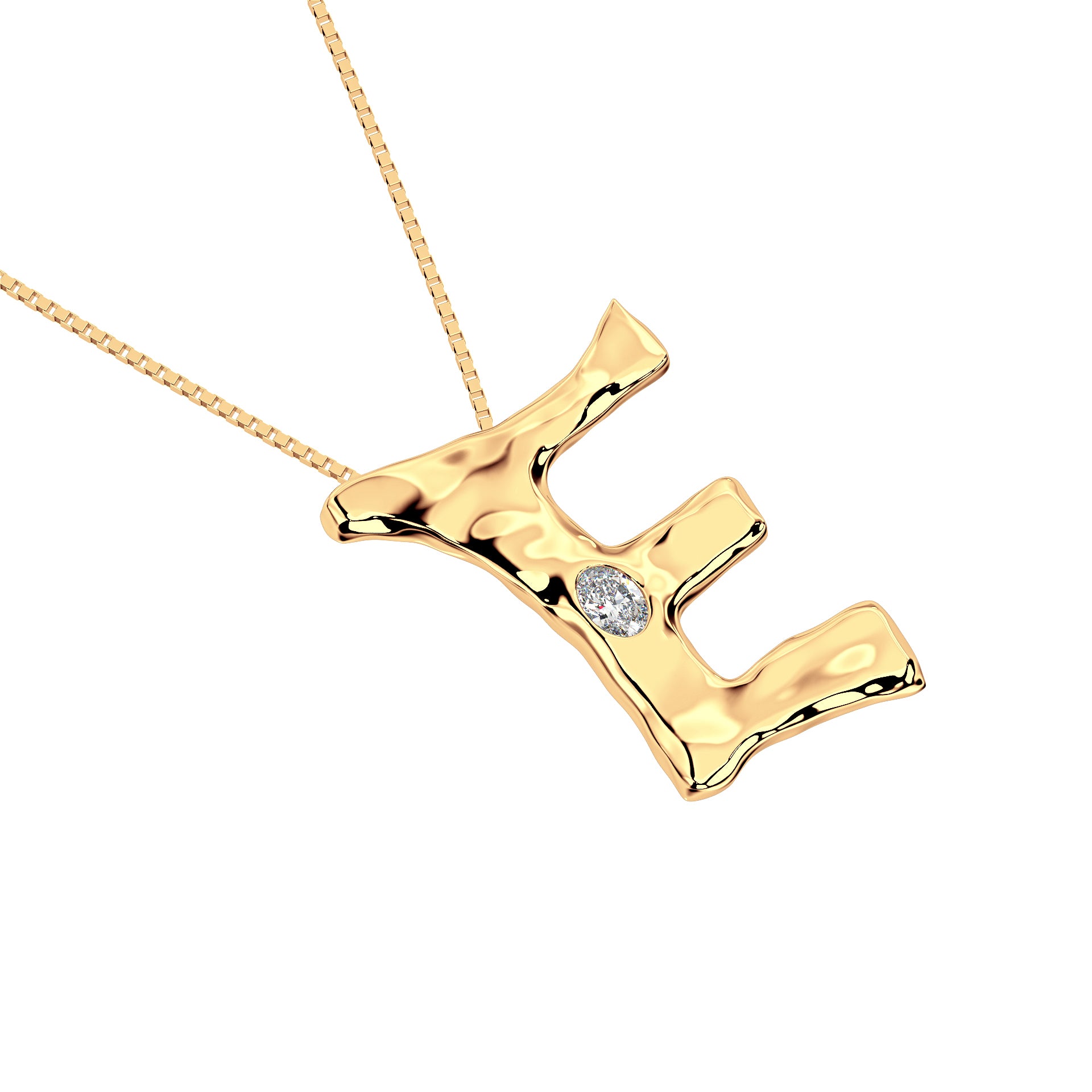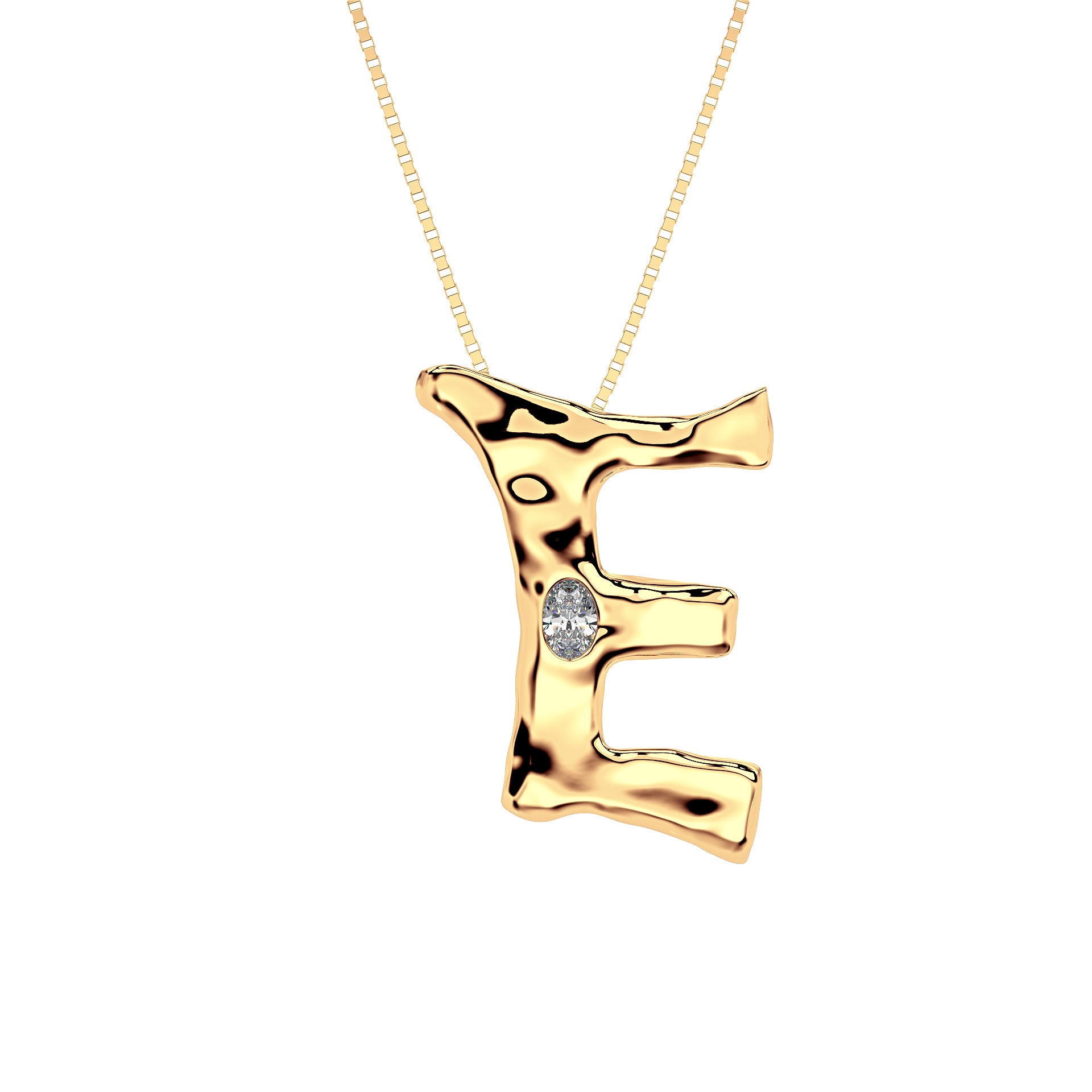 Amy Delson JewelryLetter E Necklace in 14K Gold with Oval Lab Diamond