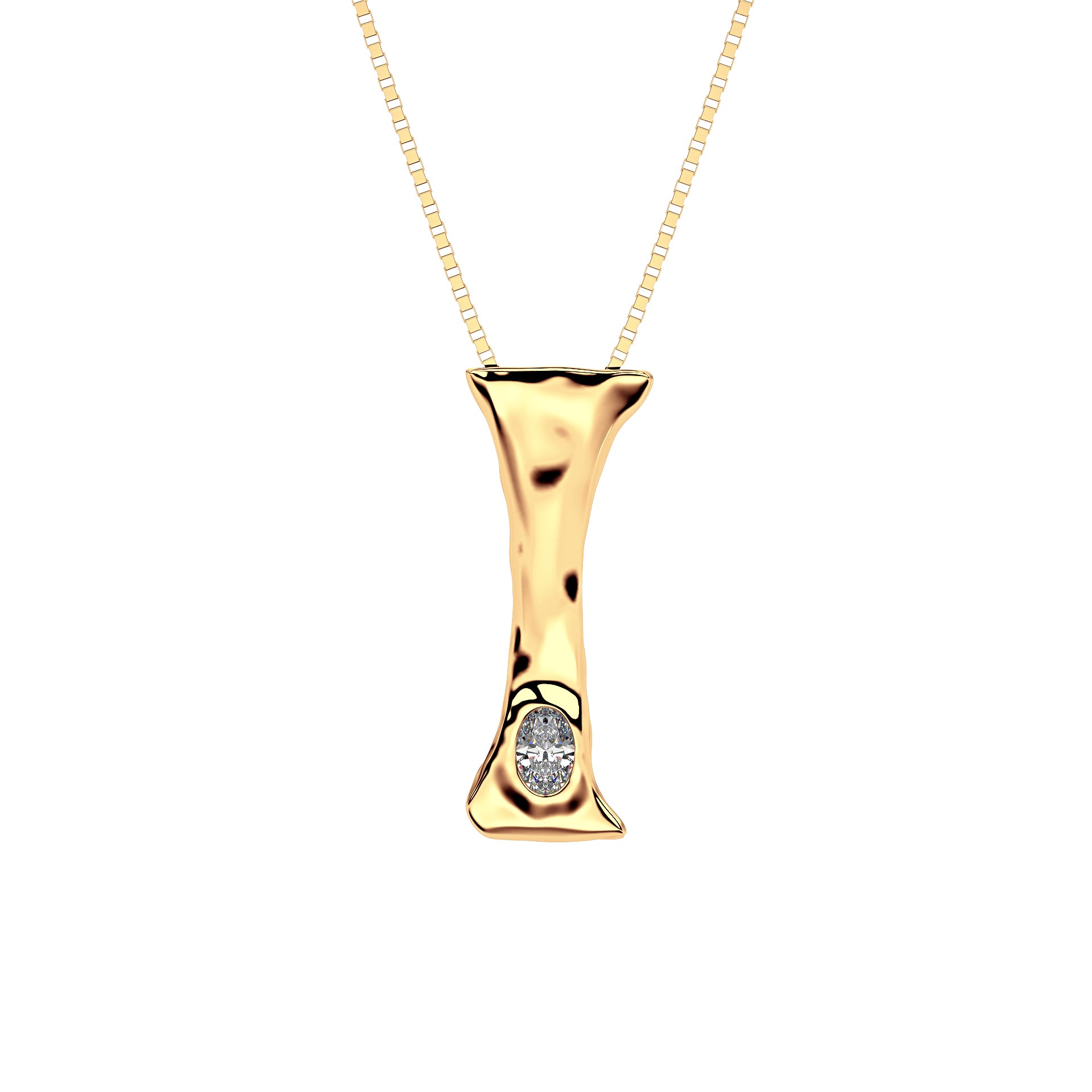 Letter I Necklace in 14K Gold with Oval Lab Diamond