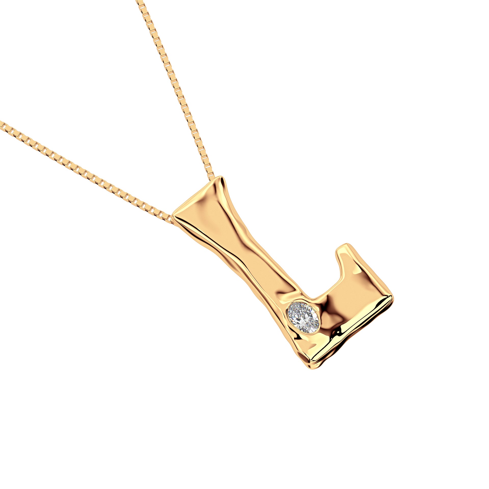 Amy Delson JewelryLetter L Necklace in 14K Gold with Oval Lab Diamond
