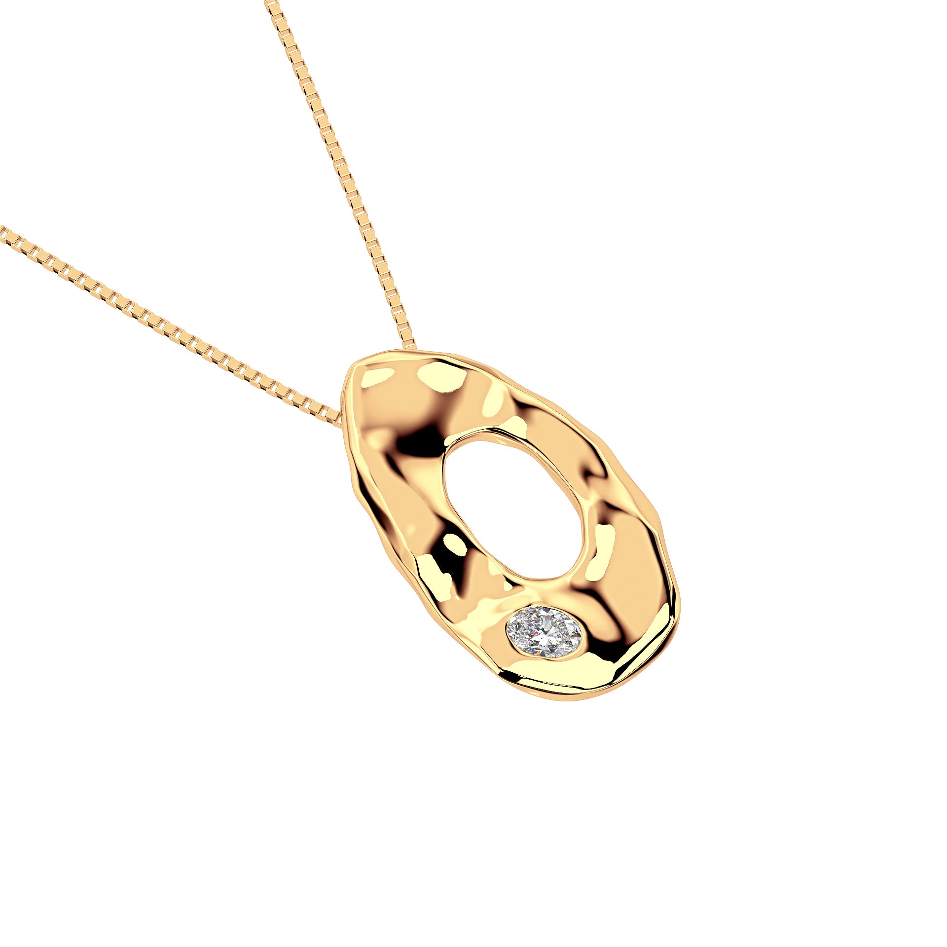 Letter O Necklace in 14K Gold with Oval Lab Diamond