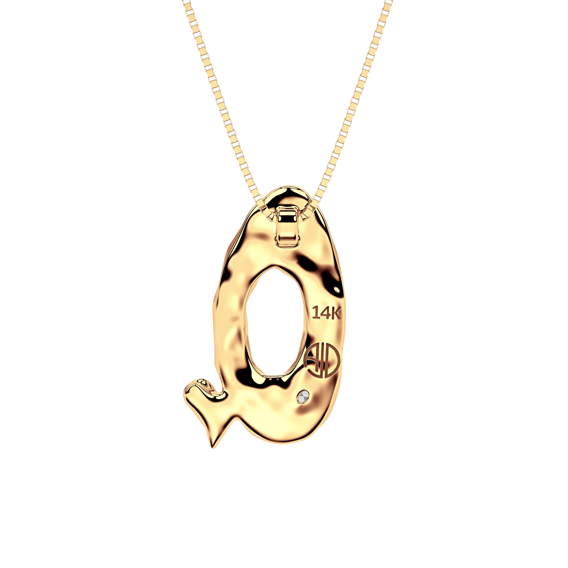 Amy Delson JewelryLetter Q Necklace in 14K Gold with Oval Lab Diamond