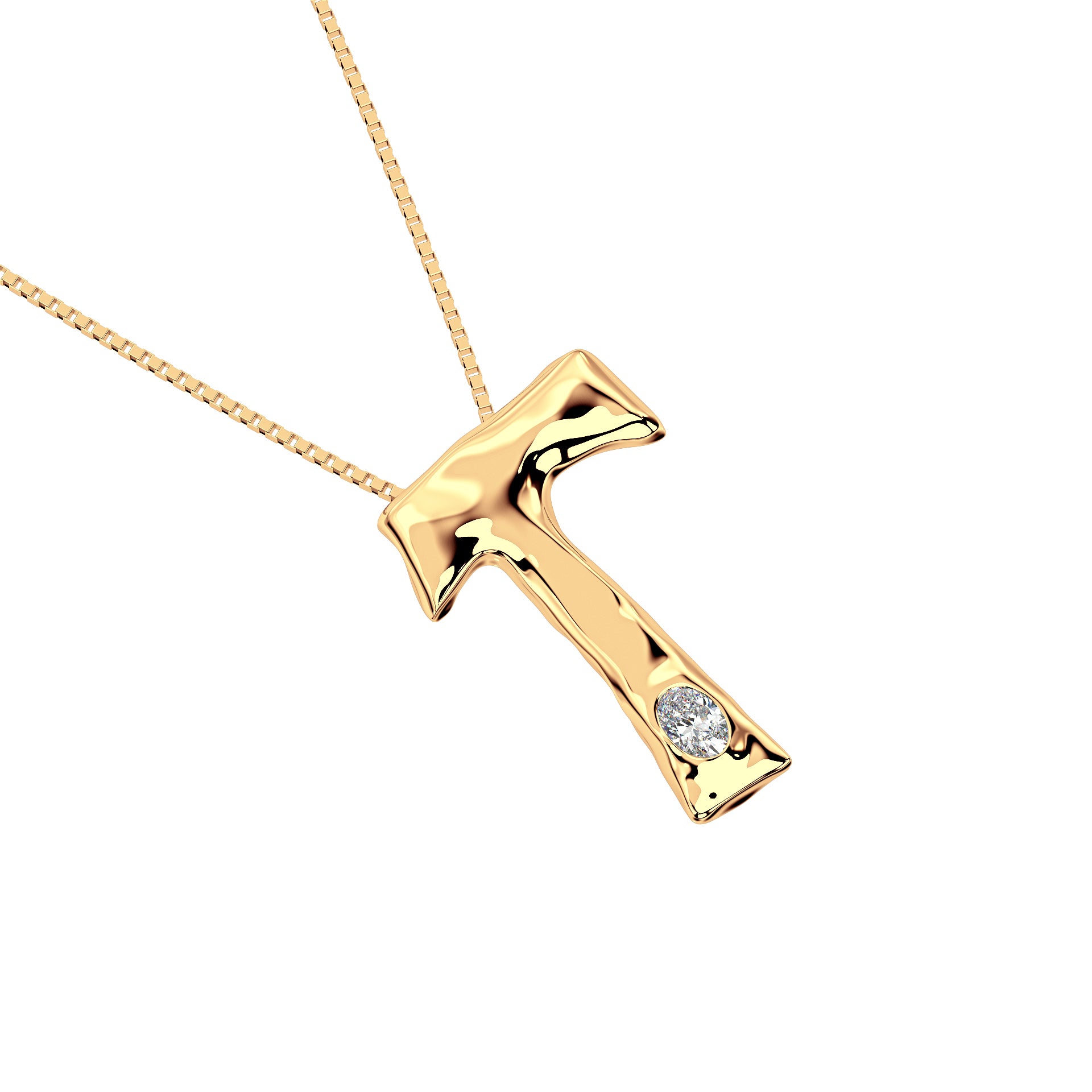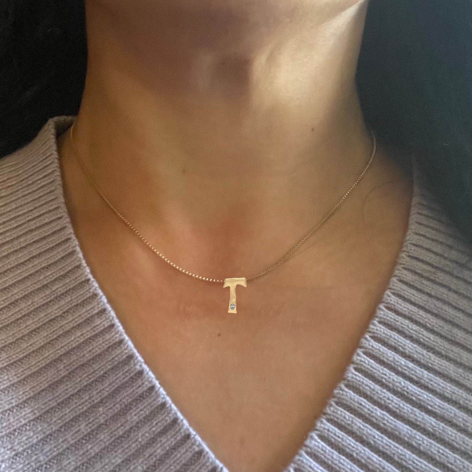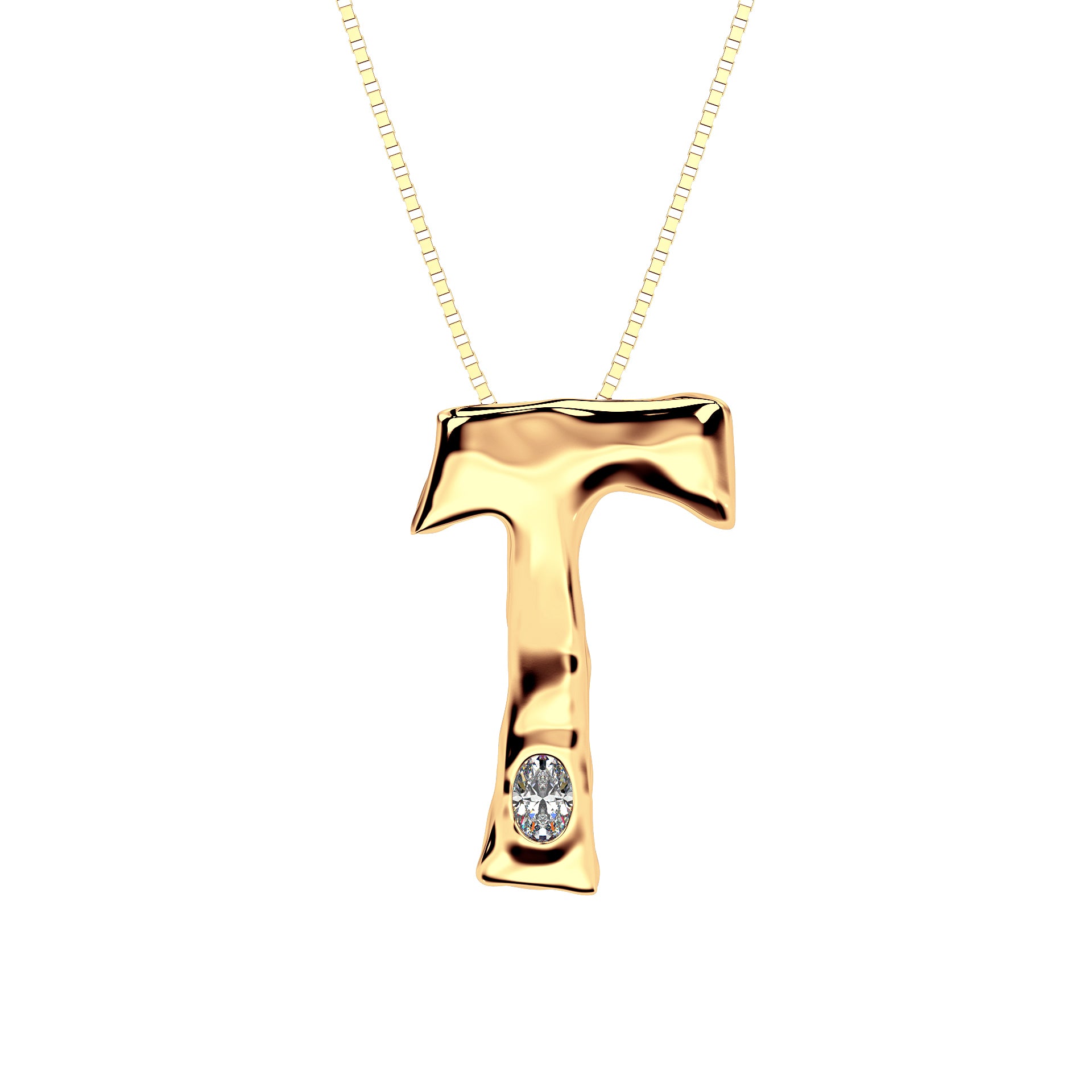 Amy Delson JewelryLetter T Necklace in 14K Gold with Oval Lab Diamond