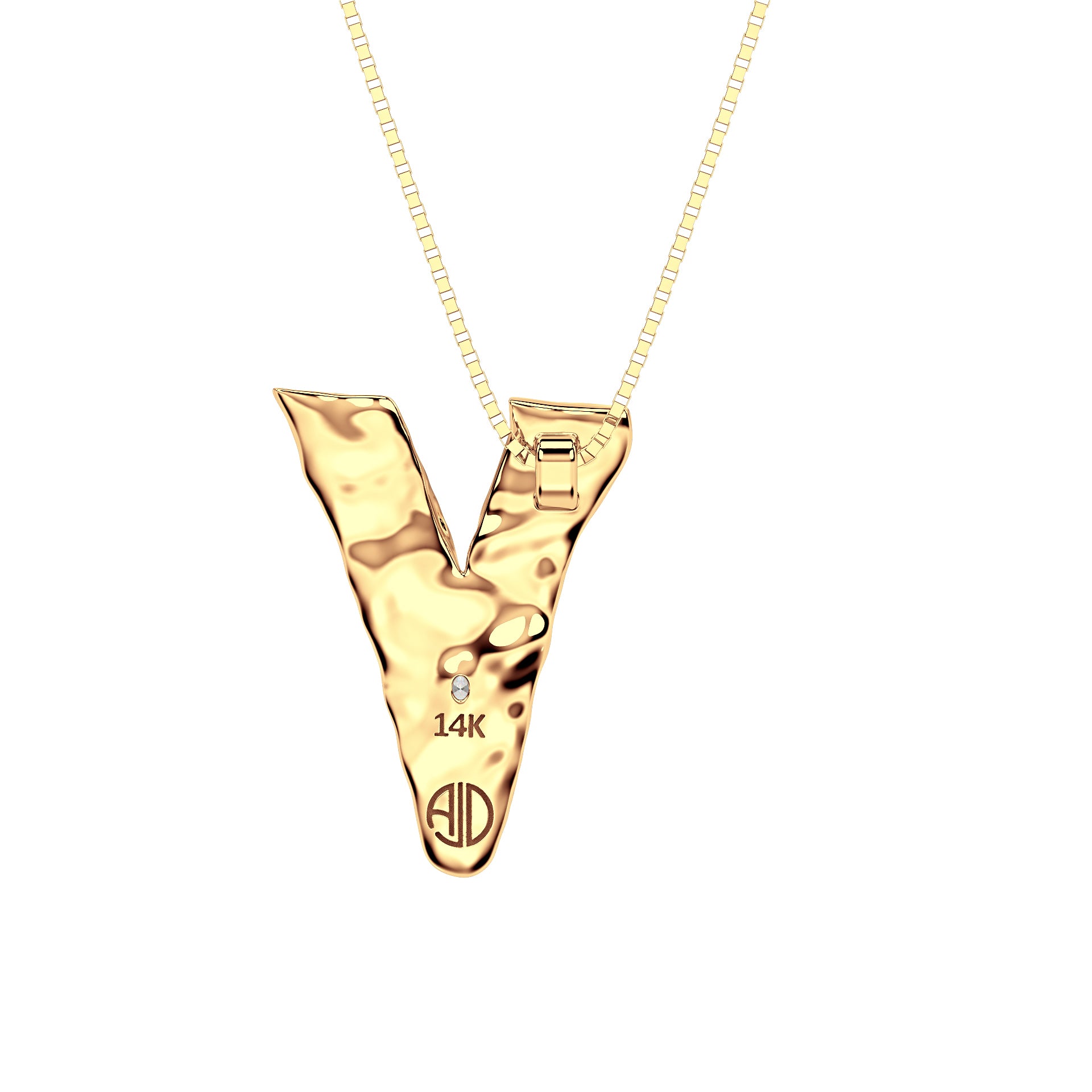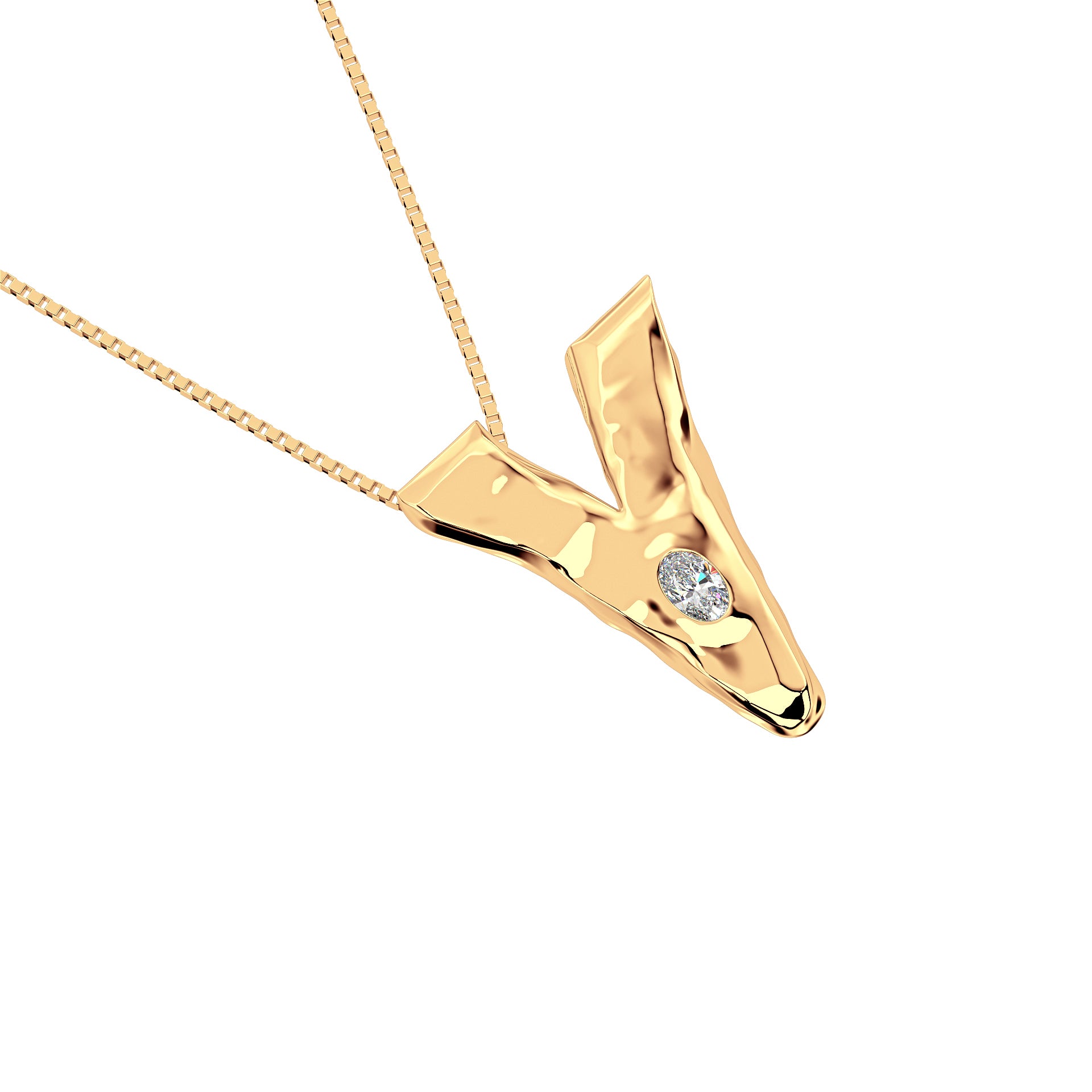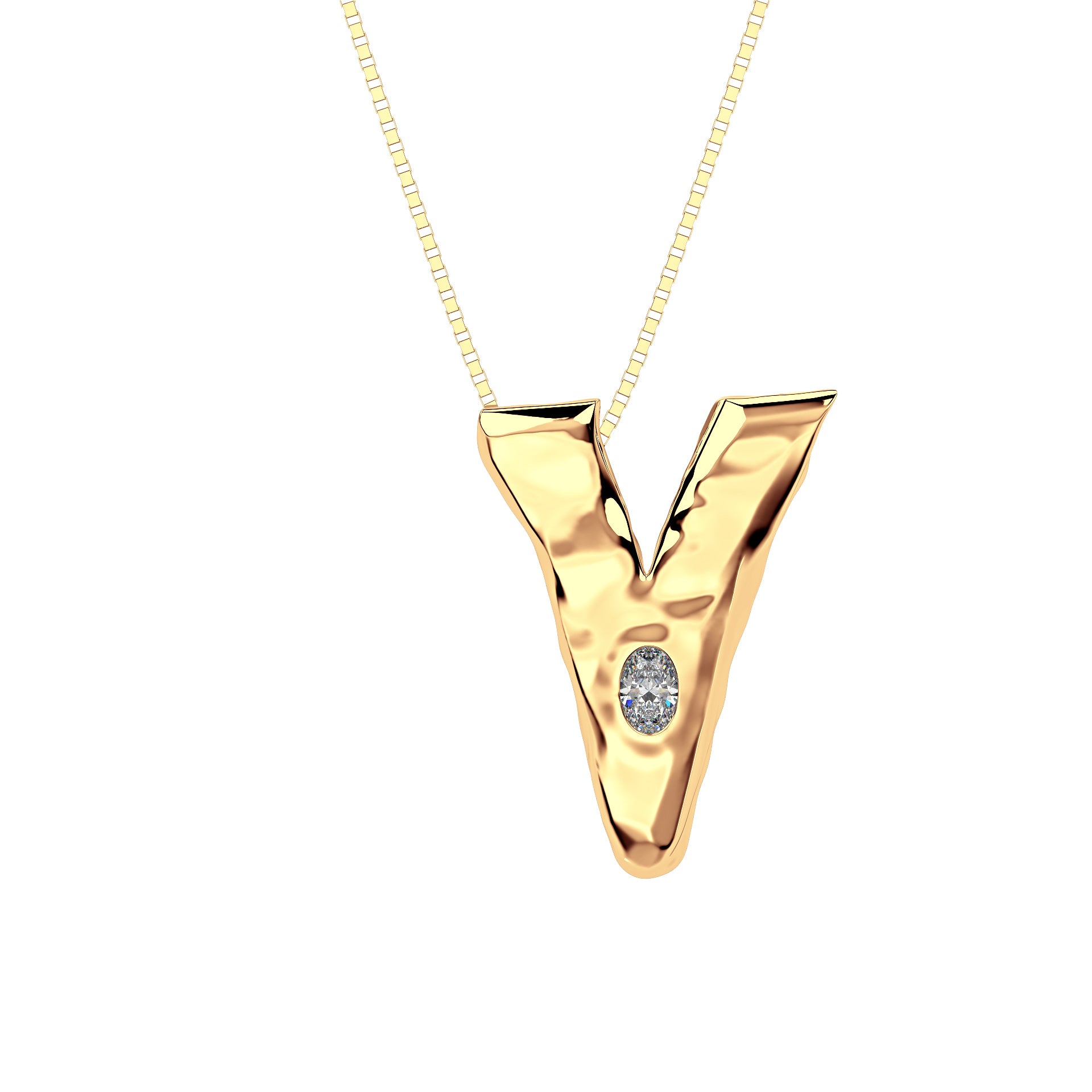 Amy Delson JewelryLetter V Necklace in 14K Gold with Oval Lab Diamond