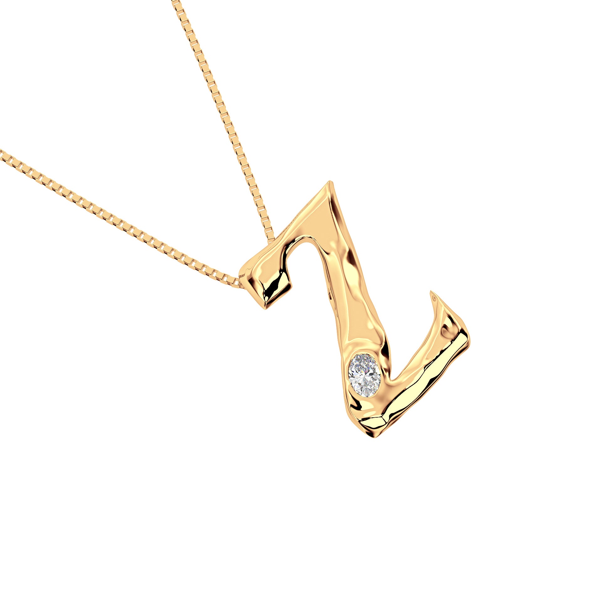 Amy Delson JewelryLetter Z Necklace in 14K Gold with Oval Lab Diamond