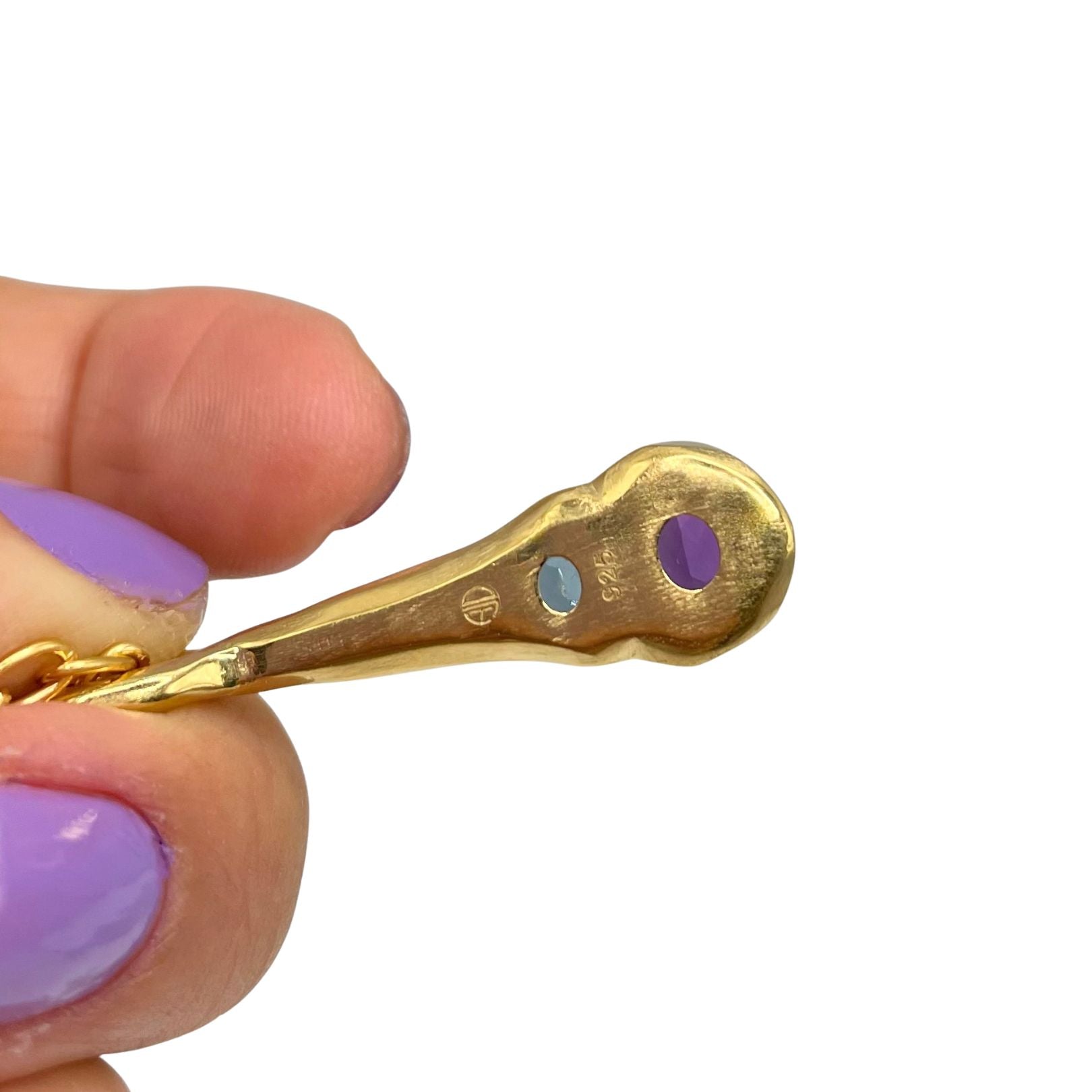 - Purple Amethyst (8x6mm) paired with London Blue Topaz (6x4mm)