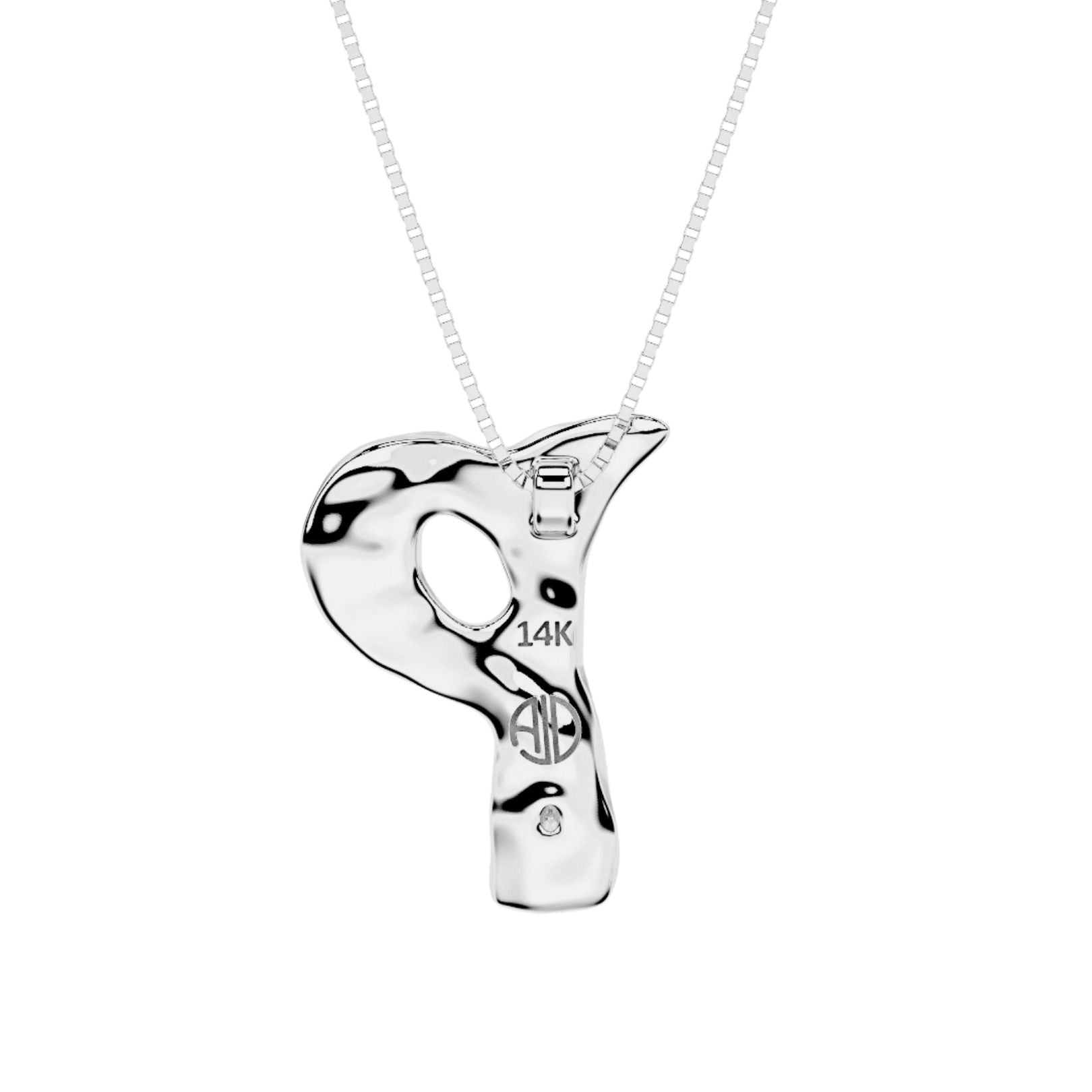Letter P Necklace in 14K White Gold with Oval Lab Diamond